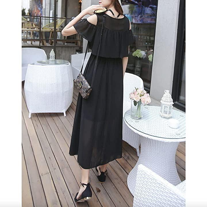 膝丈の裏地とシフォンの透け感がちょっぴりセクシーな印象に♡・ビーチやリゾートにもピッタリ。サンダルを合わせればリゾートワンピとしても重宝します♡ 一枚で華やかな印象になり、結婚式や披露宴、ちょっとしたパーティーでも着用頂けます。