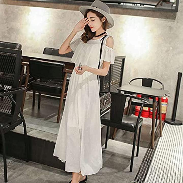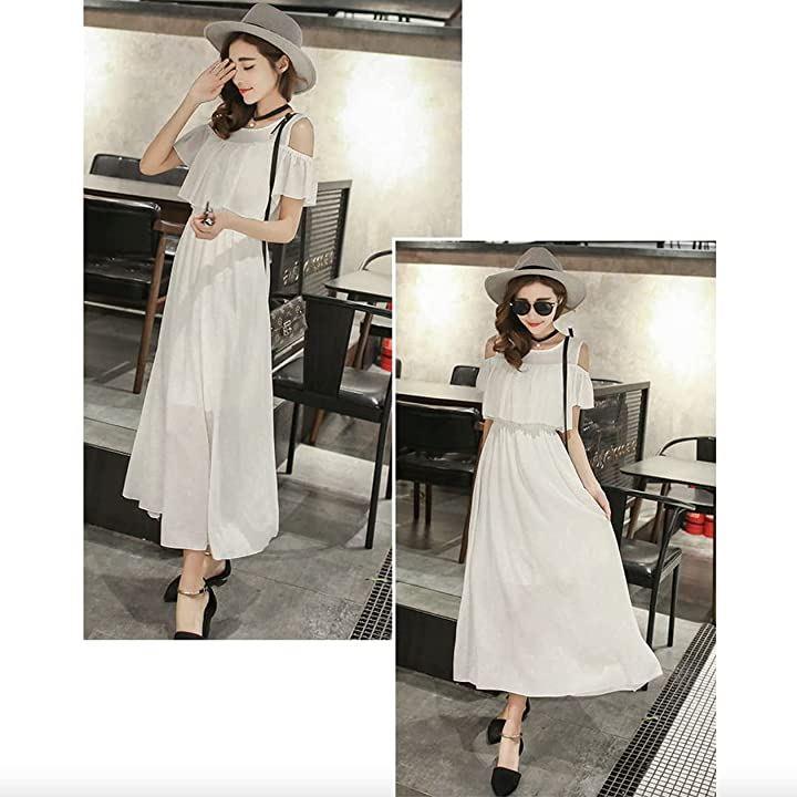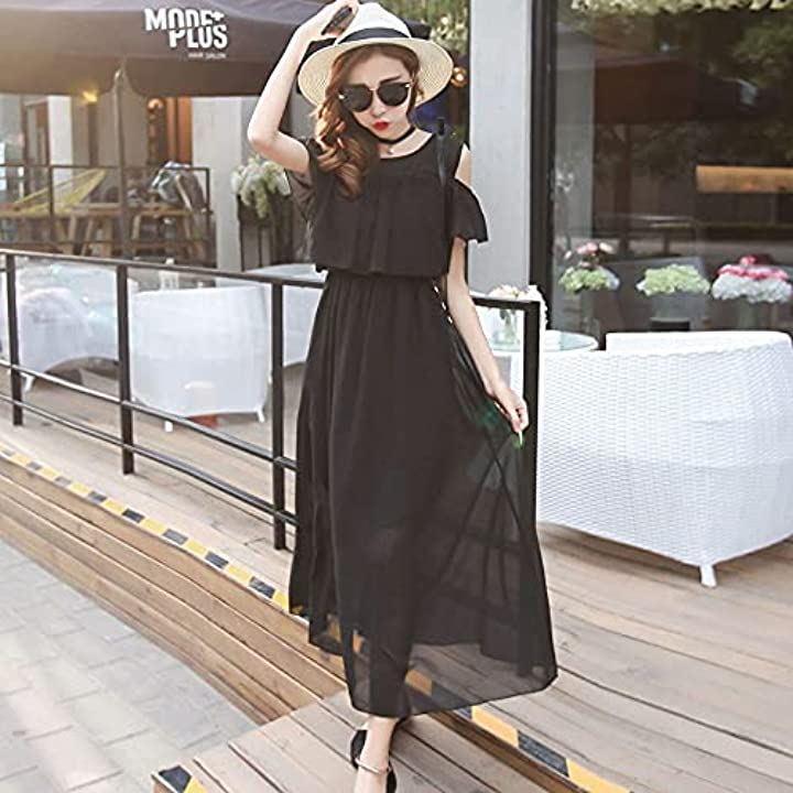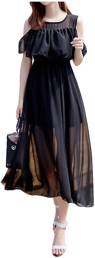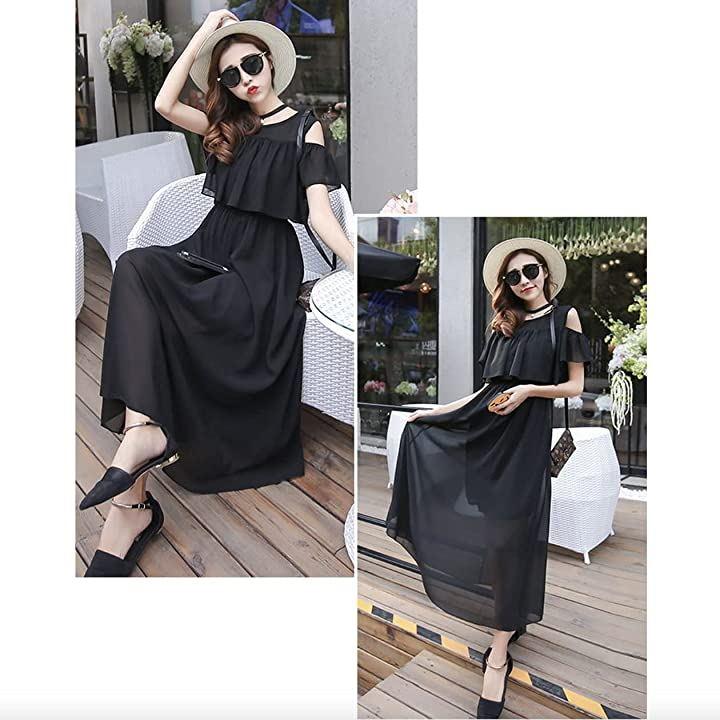 Off-the-shoulder chiffon dress long off-the-shoulder sheer