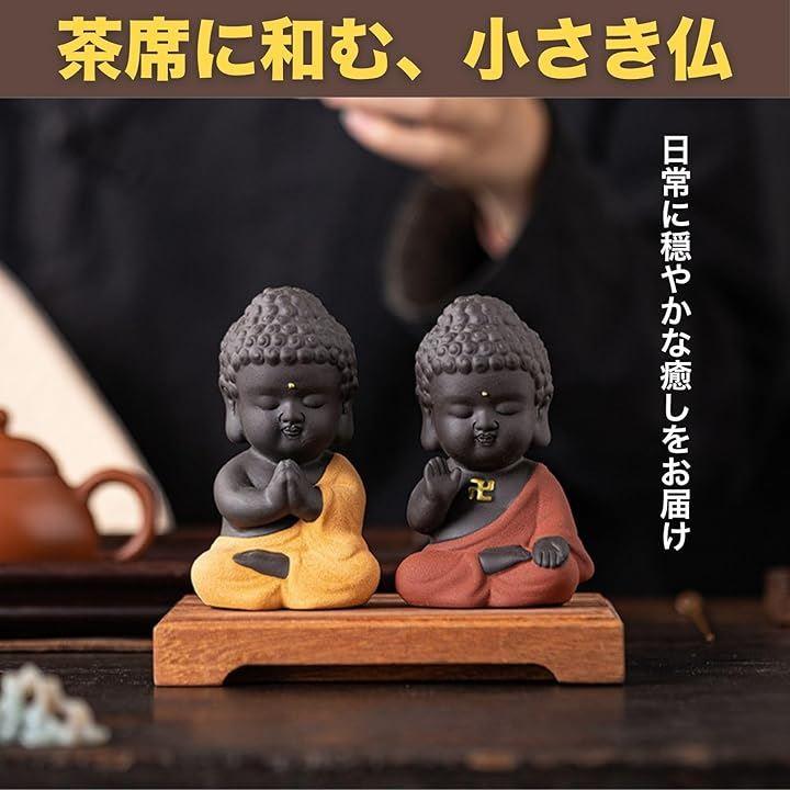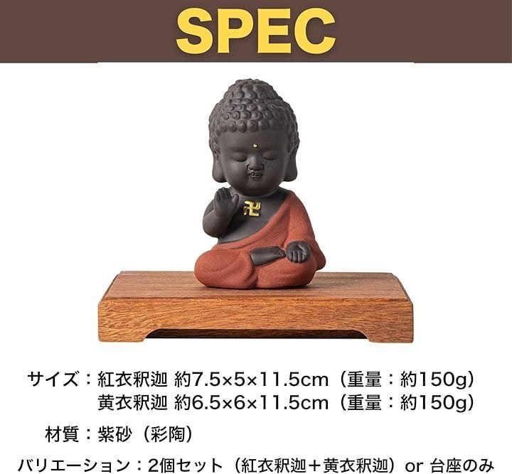 「商品仕様」2個セット、紅衣釈迦サイズ : 約7.5x5x11.5cm(重量 : 約150g)、黄衣釈迦サイズ : 約6.5x6x11.5cm(重量 : 約150g)/ 材質 : 紫砂(彩陶) *バリエーションは、2個セット、底座のみがございます。