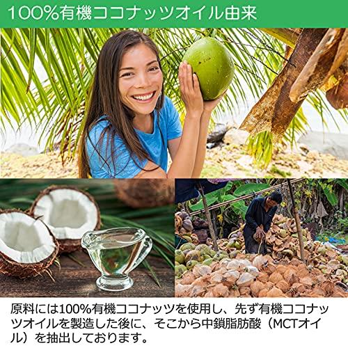 100%有機ココナッツオイル由来 原料には100%有機ココナッツを使用し、先ず有機ココナッツオイルを製造した後に、そこから中鎖脂肪酸(MCTオイル)を抽出しております。