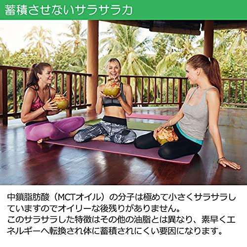 蓄積させないサラサラ力 中鎖脂肪酸(MCTオイル)の分子は極めて小さくサラサラしていますのでオイリーな後残りがありません。 このサラサラした特徴はその他の油脂とは異なり、素早くエネルギーへ転換され体に蓄積されにくい要因になります。【重要】メーカーによる商品リニューアルに伴いパッケージ(内容量も含む)変更が行われた場合、新パッケージでお届け致します事ご了承願います。