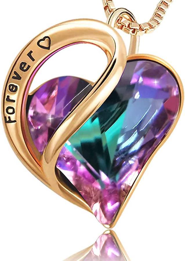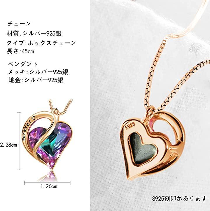 カラフルのクリスタル:ABカラー(青い+紫色)シルバー925ピンクゴールドネックレスボックスチェーンのサイズ:45CM、ピンクゴールドネックレスの材質:敏感肌対応925シルバー。