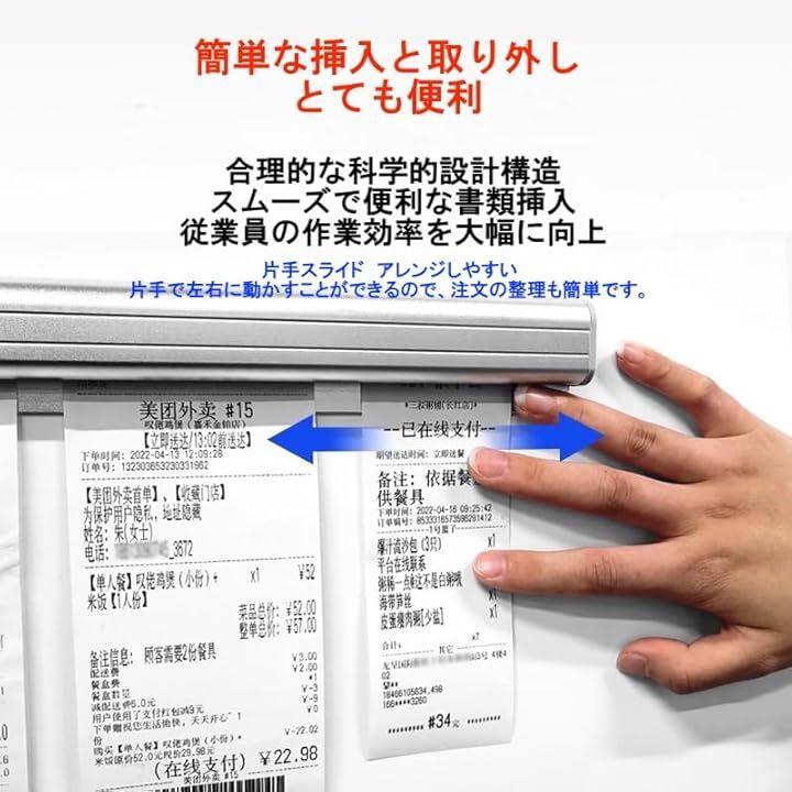 さらに、左右に自由にスライドさせることが可能なので、繁忙な時でも片手で伝票を挟める設計となっております。