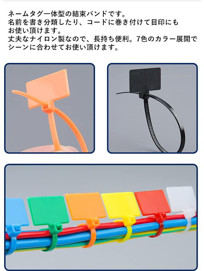 ネームタグ一体型の結束バンドです。名前を書き分類したり、コードに巻き付けて目印にもお使い頂けます。丈夫なナイロン製なので、長持ち便利。7色のカラー展開でシーンに合わせてお使い頂けます。