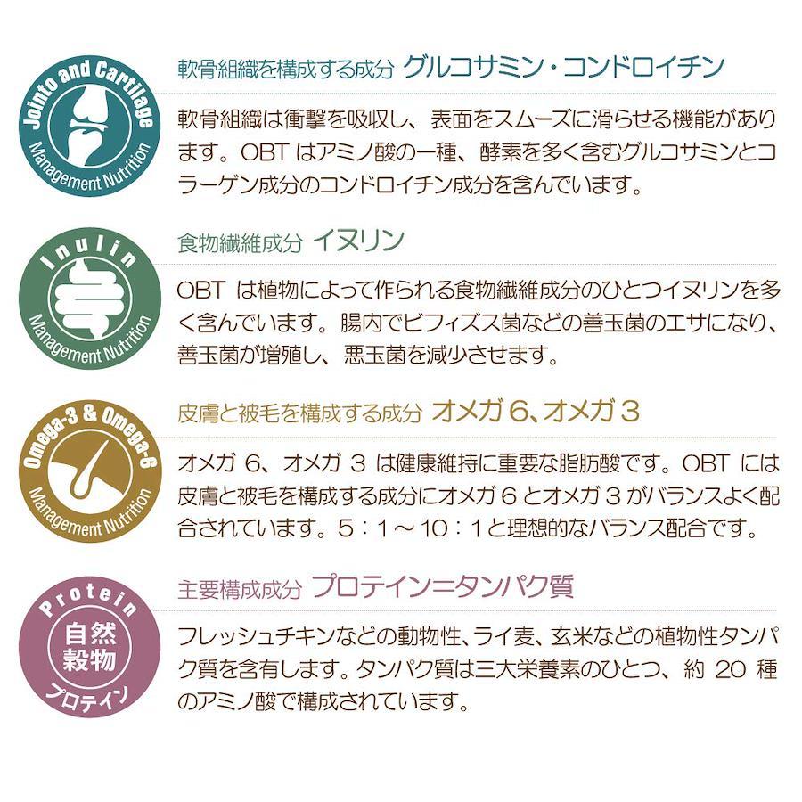 穀物を一切使用していないオーブンベーキング製法のナチュラルホリスティックフード。 オールステージ 全ての猫種向きです。 ■10倍の時間をかけた「オーブンベークド製法」■ オーブンベークドトラディション(※以下 OBT)は従来のドライフードの製造にかかる時間の、実に10倍の時間をかけて丹念に調理されています。 一般によくあるドライフードは製造コストを抑えるために高温で加工することが多く、その結果、栄養分は破壊されてしまいます。 OBTは低温でじっくりと時間をかけることで、香り・風味・栄養分を損なうことなく保持することが可能となりました。 「オーブンベークド製法」は粒がカチカチに硬くなることがなく、 簡単に噛み砕けて、消化吸収に優れています。 ■オールナチュラル原材料■ OBTを製造しているバイオビスケット社はHACCP(ハサップ)の認可を受けております。 HACCPとは人間の食品衛生管理システムです。 OBTでは主原料に使用されている全ての原材料に於いて人が食する基準をクリアしています。もちろん、AFFCO(アメリカ飼料検査官協会)の適合品でもあります。