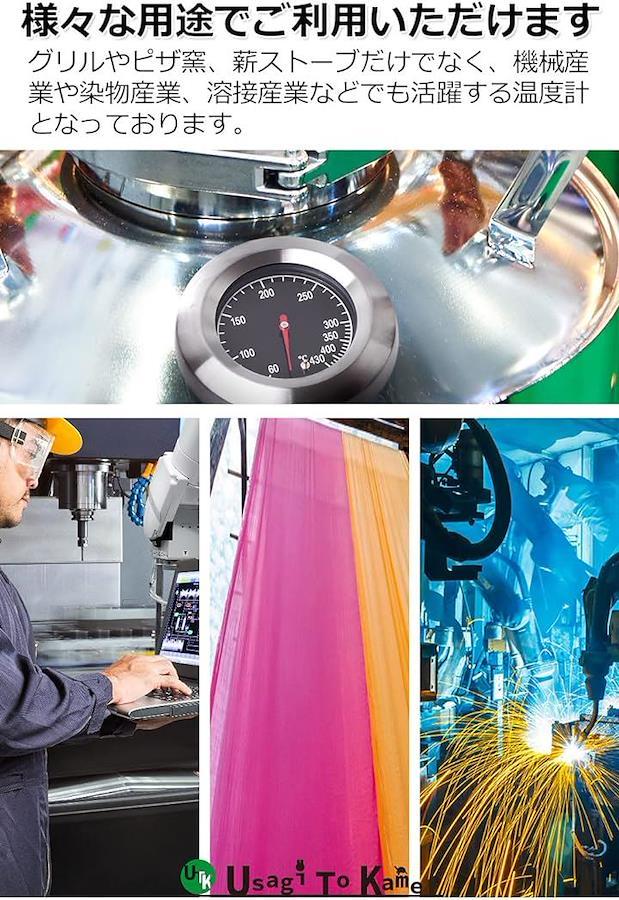 グリルやピザ窯、薪ストーブだけでなく、機械産業や染物産業、溶接産業などでも活躍する温度計となっております。