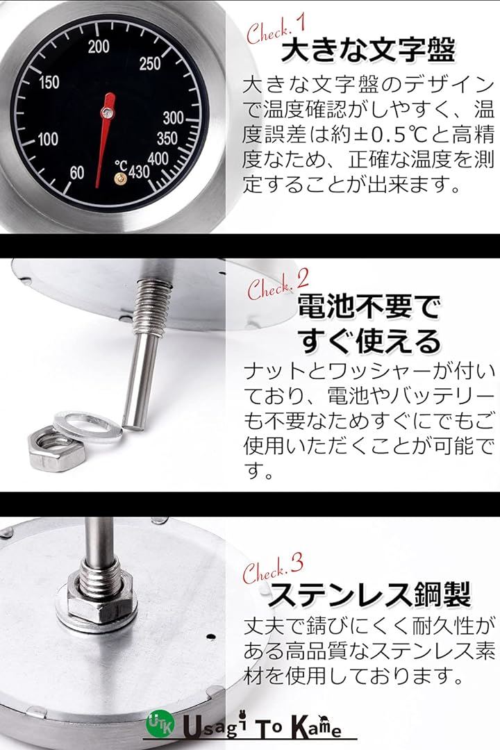 またご自身でDIYしていただけるので、バーベキューのグリルの蓋に取り付けたり、揚げ物やコーヒー焙煎、コンベクションオーブンの温度確認でご使用したりと、様々な用途でご利用いただけます。