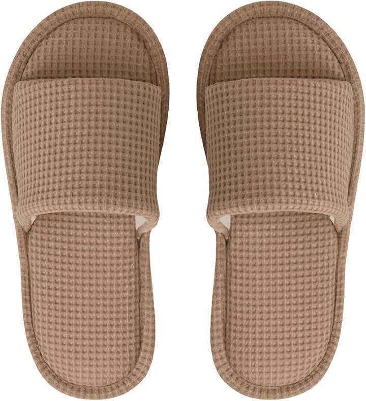 「快適な履き心地のワッフル生地でオールシーズン活躍」肌ざわりの良いワッフル生地を使用したルームシューズは、通気性と保温性を兼ね備えた設計。