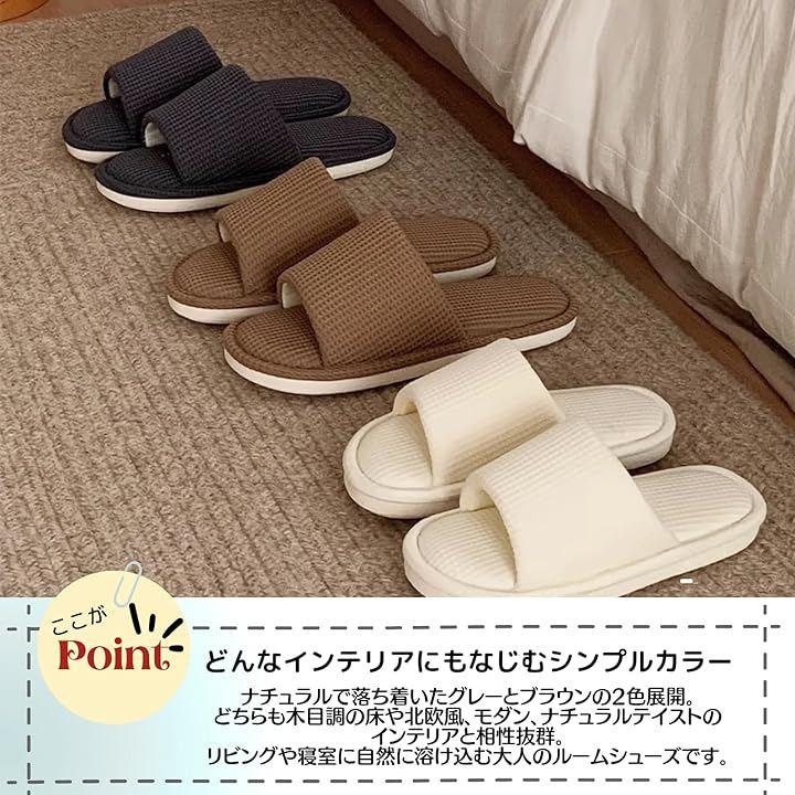 リビングや寝室に自然に溶け込む、大人のルームシューズです。