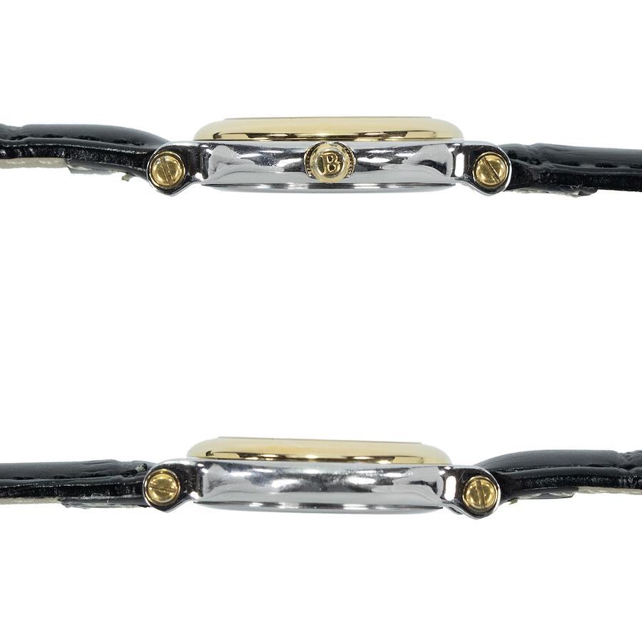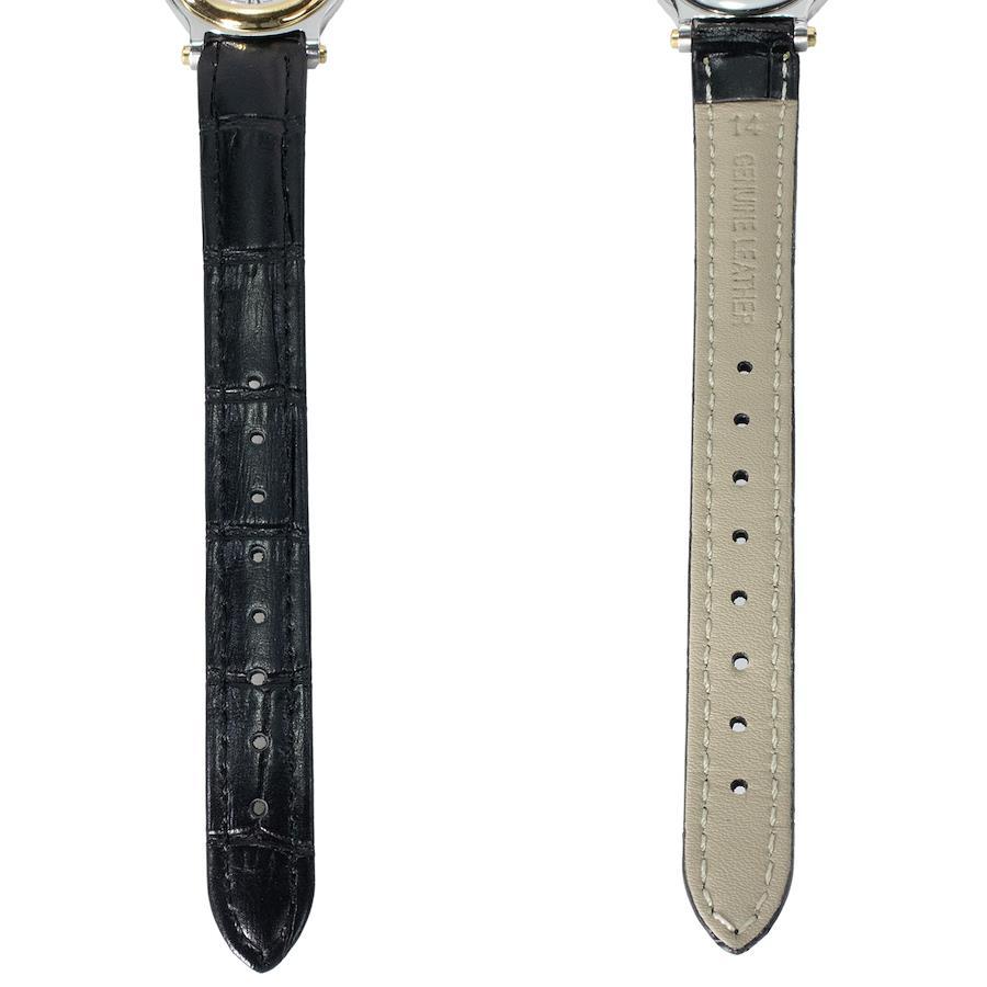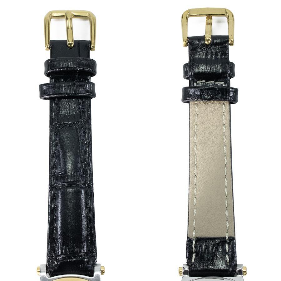 シックなブラックの革ベルトが、時計全体の印象をぐっと引き締め、知的な手元を演出いたします。