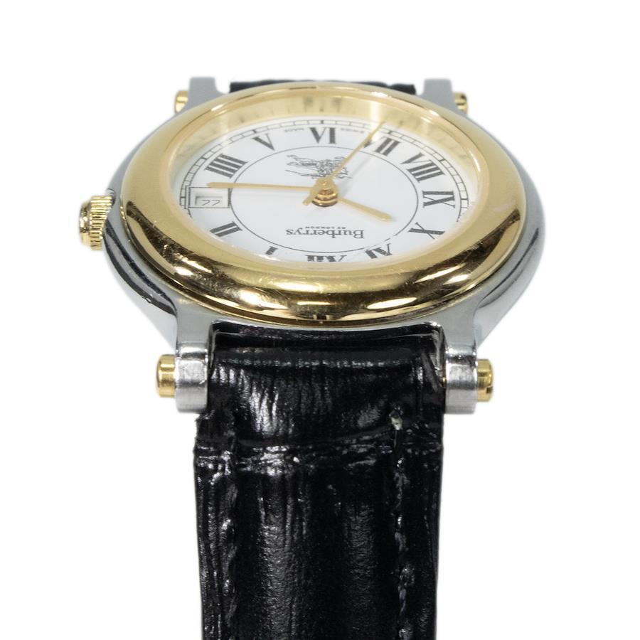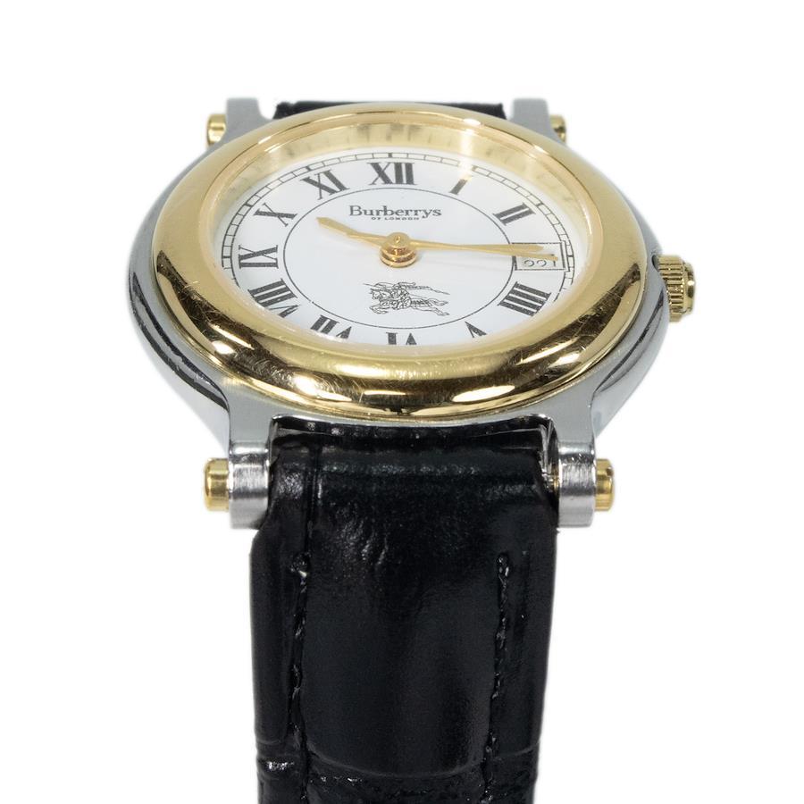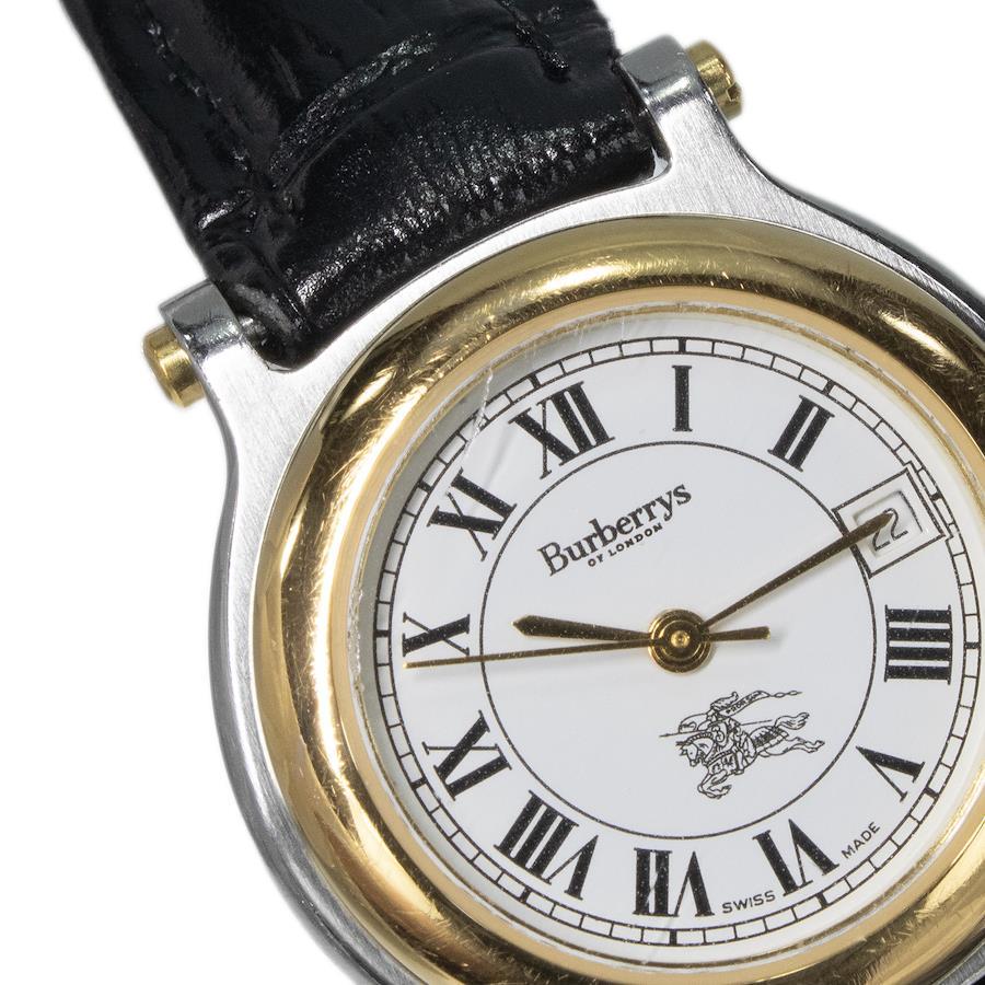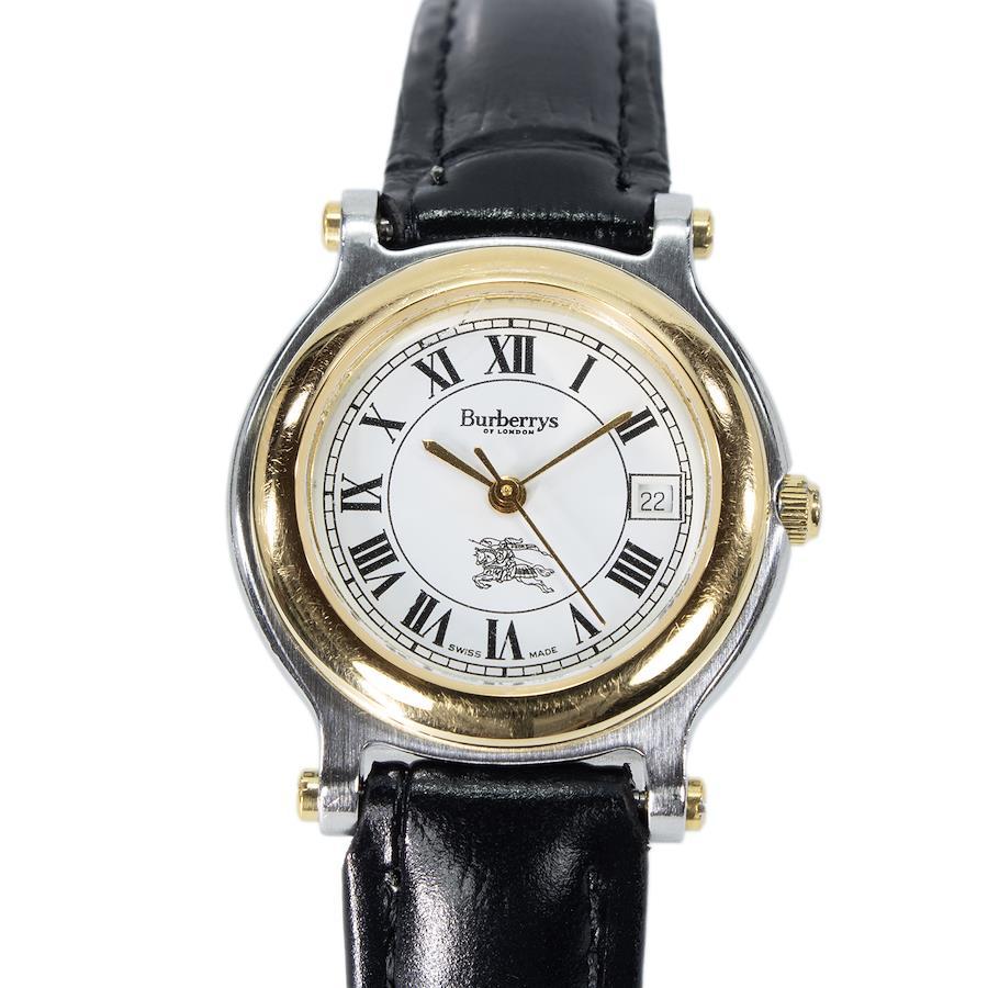 こちらは白文字盤にローマ数字が映える王道のデザインが魅力の、バーバリーの腕時計でございます。
