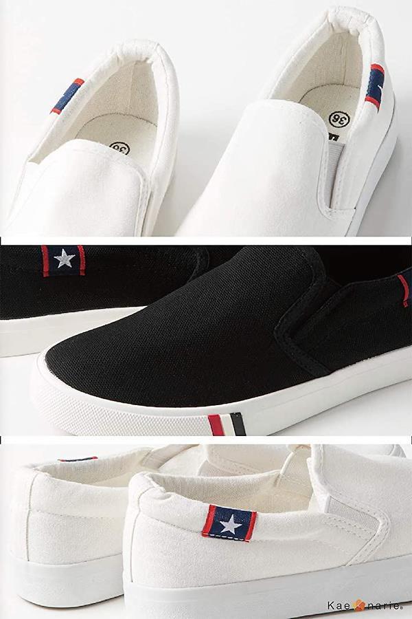 (カエナリエ)Kaenarieメンズレディーススリッポンデッキシューズ黒白キャンバスカジュアルスニーカー男女
