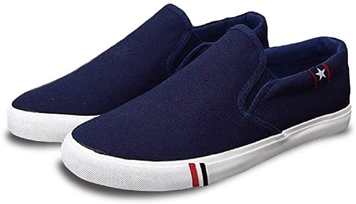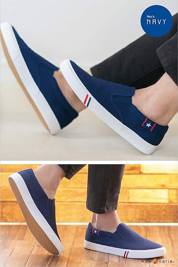 シンプルなキャンバス地のメンズ用スリッポン*飽きのこないベーシックなデザインは女性にもおすすめ。