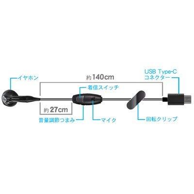 通常1-5営業日で発送:φ3.5イヤホン端子口がない端末用の片耳用イヤホンマイク。Type-C端子専用。イヤホンの受話音量を調節できる音量調節つまみ付き。