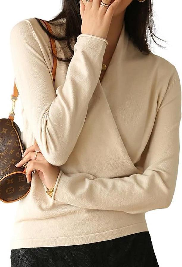 女性らしさが際立つフロントが折り重なったカシュクールデザインの風合い滑らかなニット。