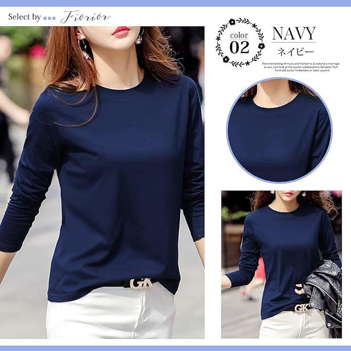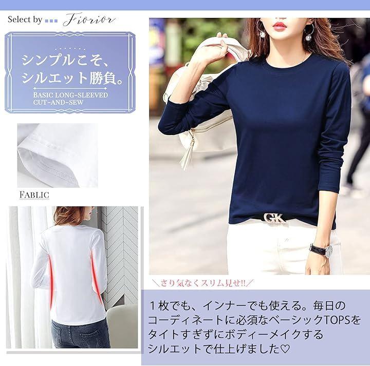 アウターに合わせやすい開きすぎないラウンドネックで、長袖タイプなのでロールアップして7分袖のアレンジも可能。