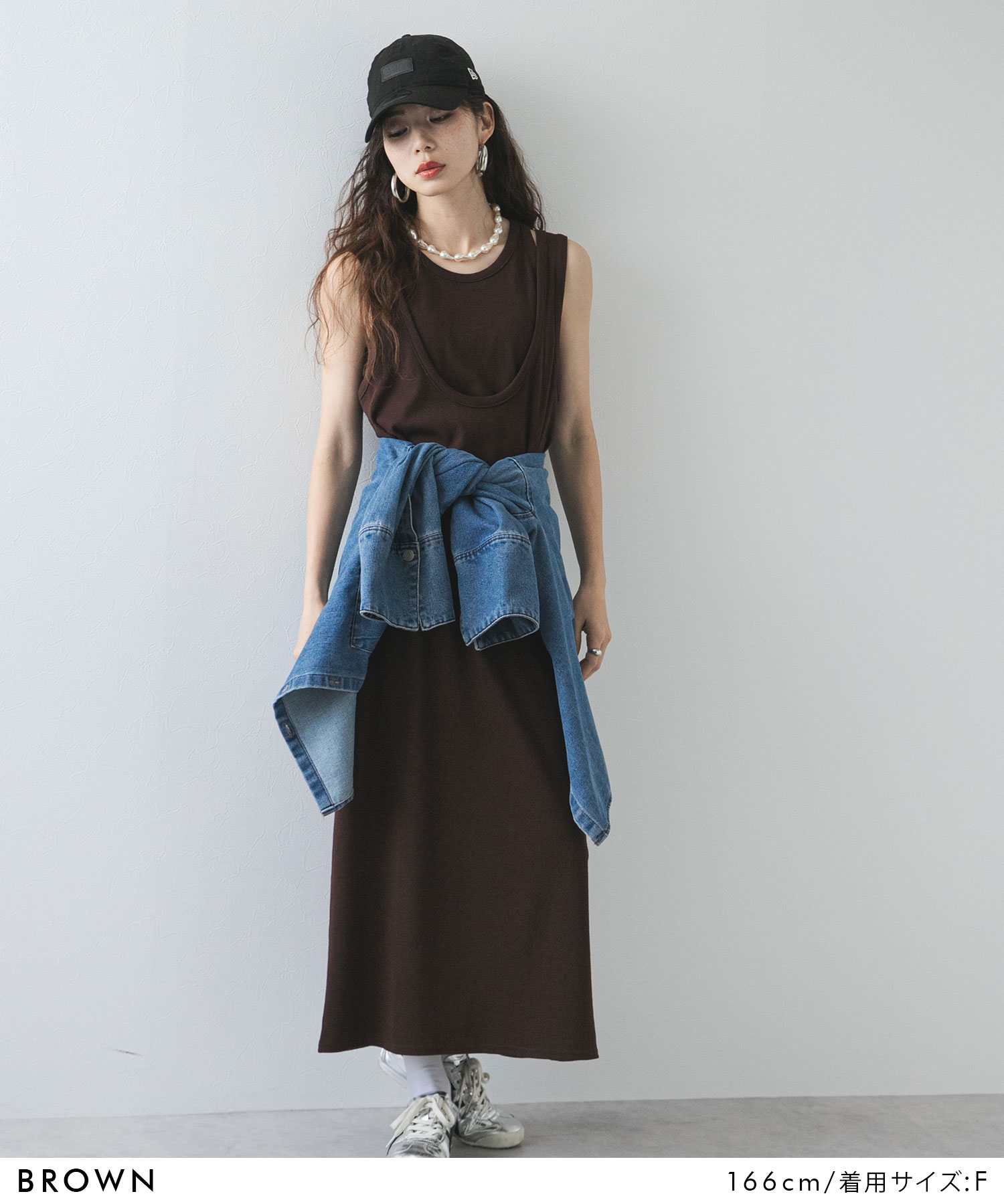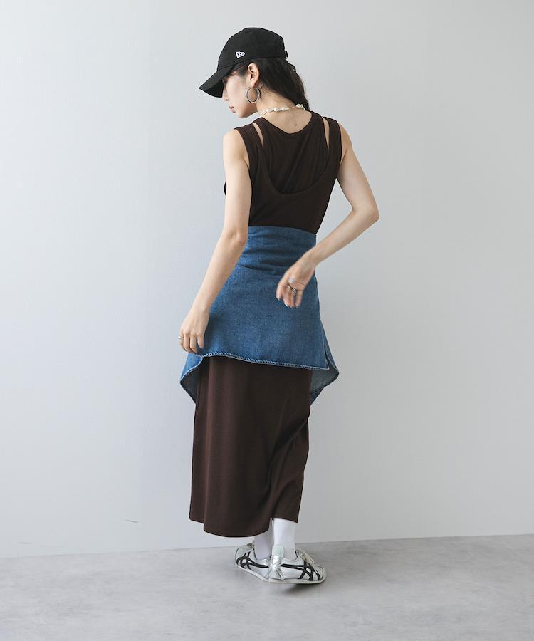 タンクトップとのレイヤードが今季らしい雰囲気を叶えてくれます。