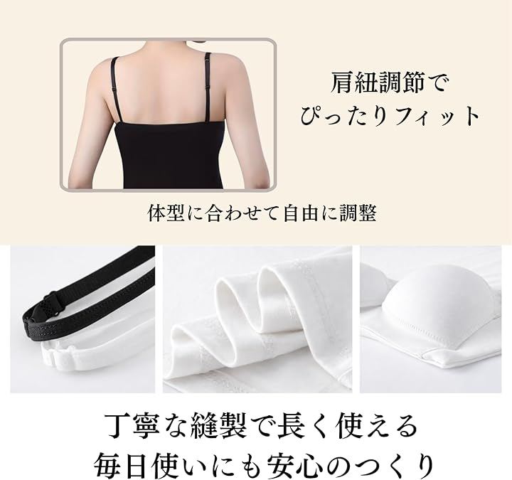 また、ブラタンク感覚で着用できるデザインで、カップなしインナーとの重ね着にも取り入れやすく、胸元レース付きデザインのトップスとも合わせやすい一枚です。