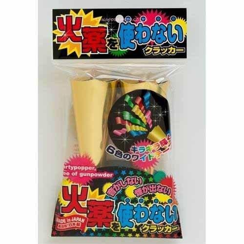 通常1-5営業日で発送:パーティーに必須アイテムクラッカー火薬を使わないクラッカー クラッカー禁止の会場で使えるクラッカーです。 ※音は出ません。 飛出口を開き、ななめ上へ向けて勢い良く振ると大賞の6色キラキラテープが出ます。 テープは本体についているので散らかりません。 火薬を使っていないので音や煙は一切出ません。