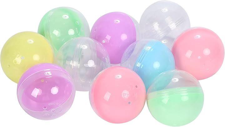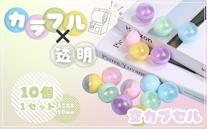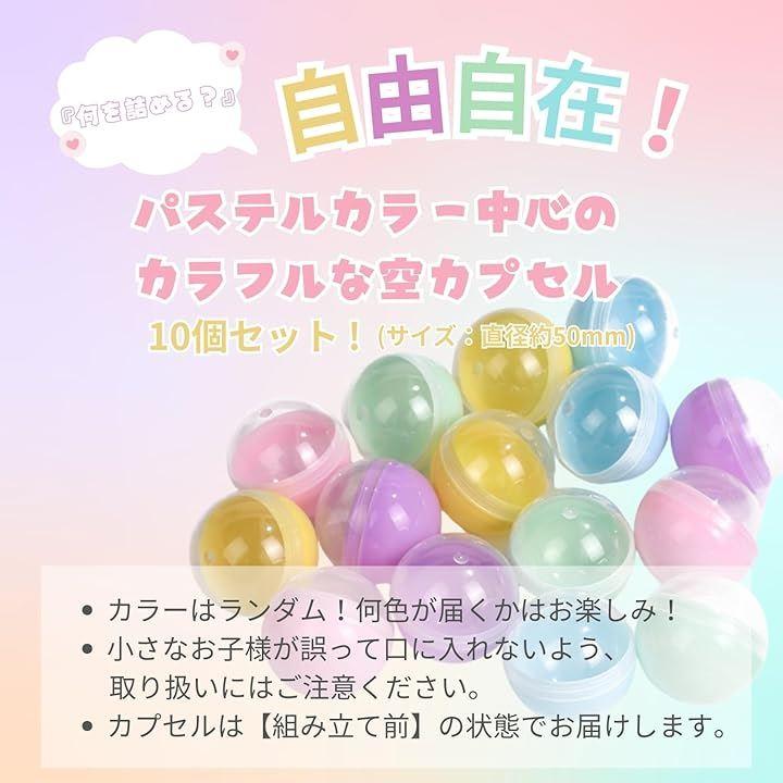 「商品名」空カプセル 「セット内容」10個セット(未組立状態でお届け) 「サイズ」直径約50mm 「カラー」パステルx透明(ランダム) 「素材」プラスチック 「用途」景品 クレーンゲーム イベント用カプセル ハンドメイドラッピング ビンゴ くじ引き 「注意事項」誤飲防止のため小さなお子様の取り扱いにはご注意ください。