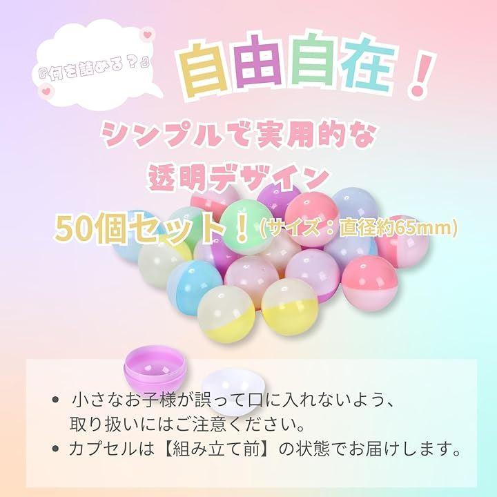 「パステルカラーがかわいい。空カプセル50個セット」 ゲームやイベントをもっと楽しくする、直径65mmのカプセルです。