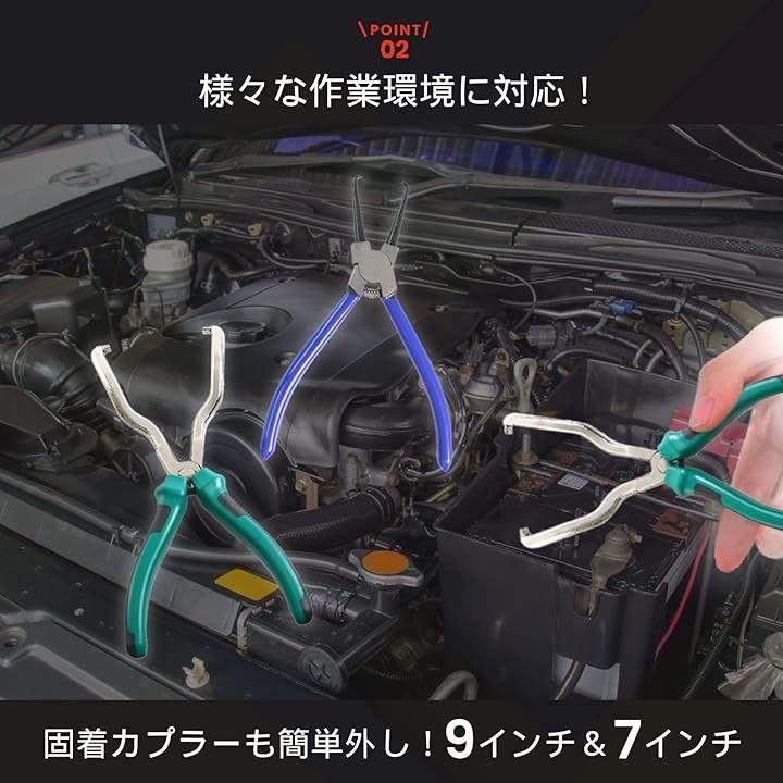 セット内容とサイズ:カプラープライヤー(9インチ 7インチ)とクリッププライヤーの各2本ずつの合計6点セット。