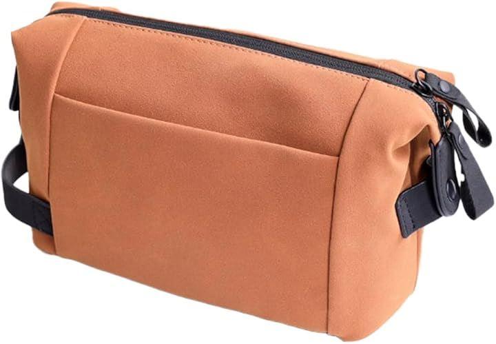 スエード風の丈夫な生地で適度な厚みがあり、大切なカメラ本体とレンズをしっかり保護してくれるカメラバッグ。