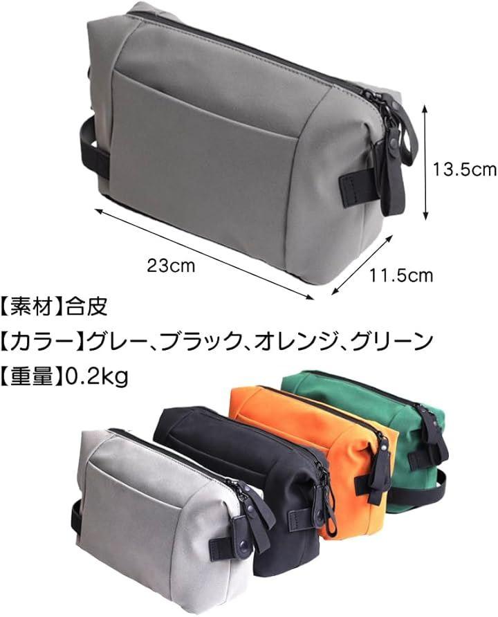 「素材」合皮「カラー」グレー、ブラック、オレンジ、グリーン「サイズ」幅23cm高さ13.5cmマチ幅11.5cm「重量」0.2kg