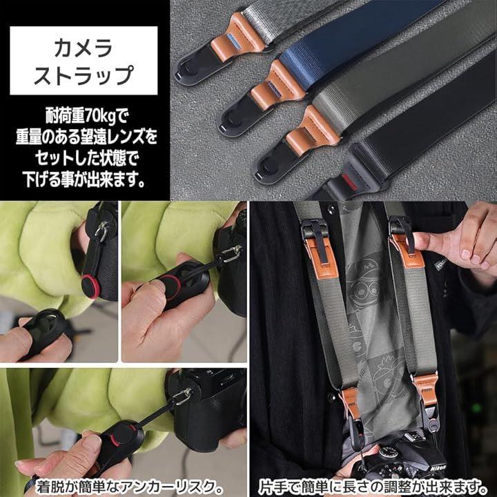 携帯時は斜め掛けし、シャッタータイミングで素早くカメラを構えられる速射対応のストラップです。
