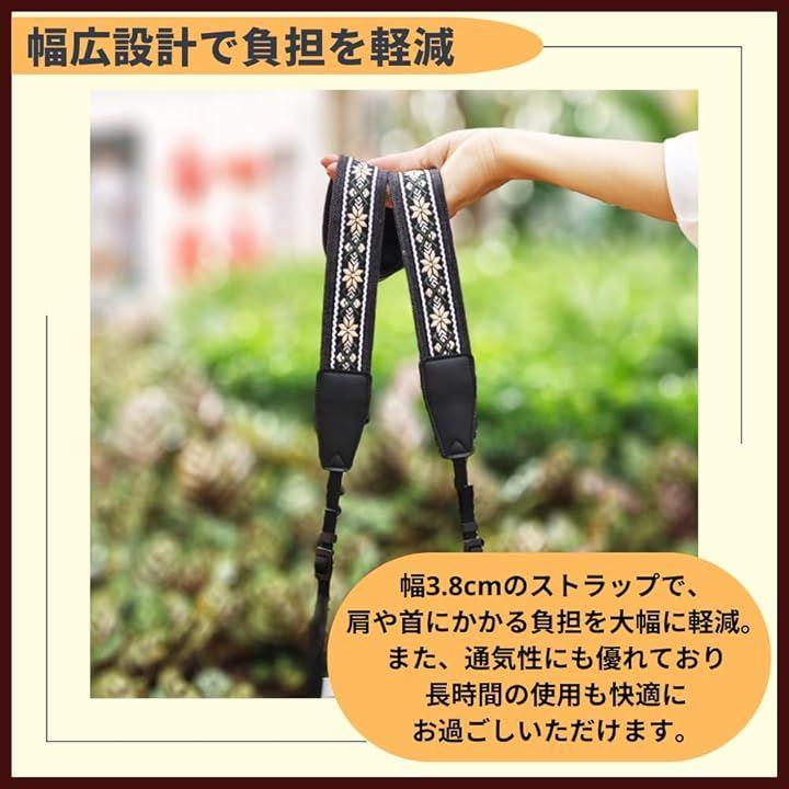 「幅広設計で負担を軽減」幅3.8cmのストラップで、肩や首にかかる負担を大幅に軽減します。