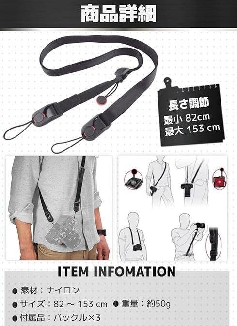 「詳細」素材:ナイロン/サイズ:82 ~ 153 cm/重量:約50g/付属品:バックルx3/耐荷重:約2kg