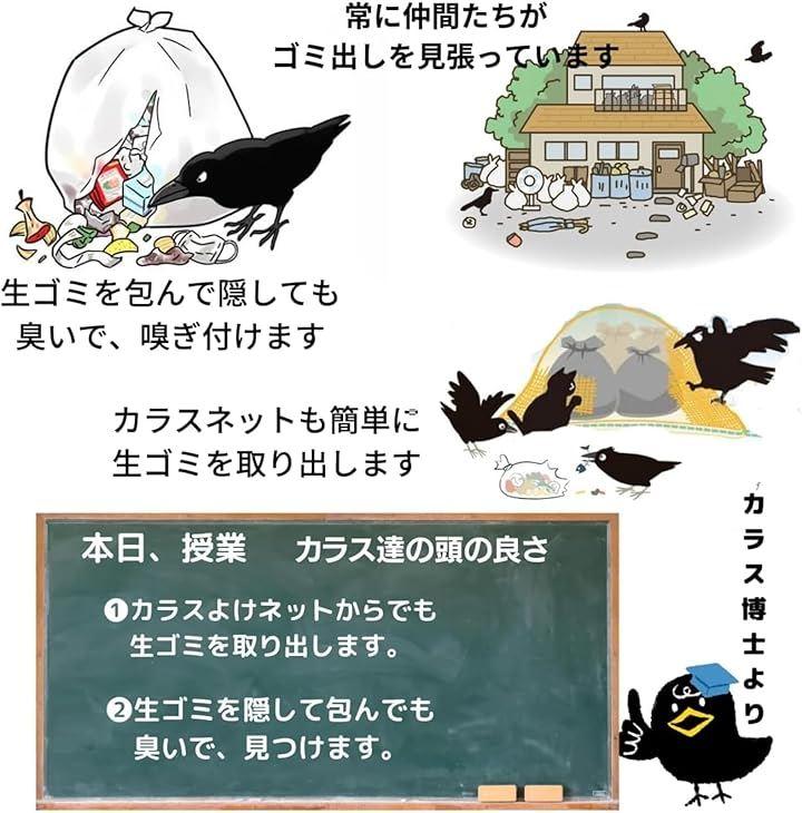 カラスは黄色は見づらくて、ゴミの中身がわからない