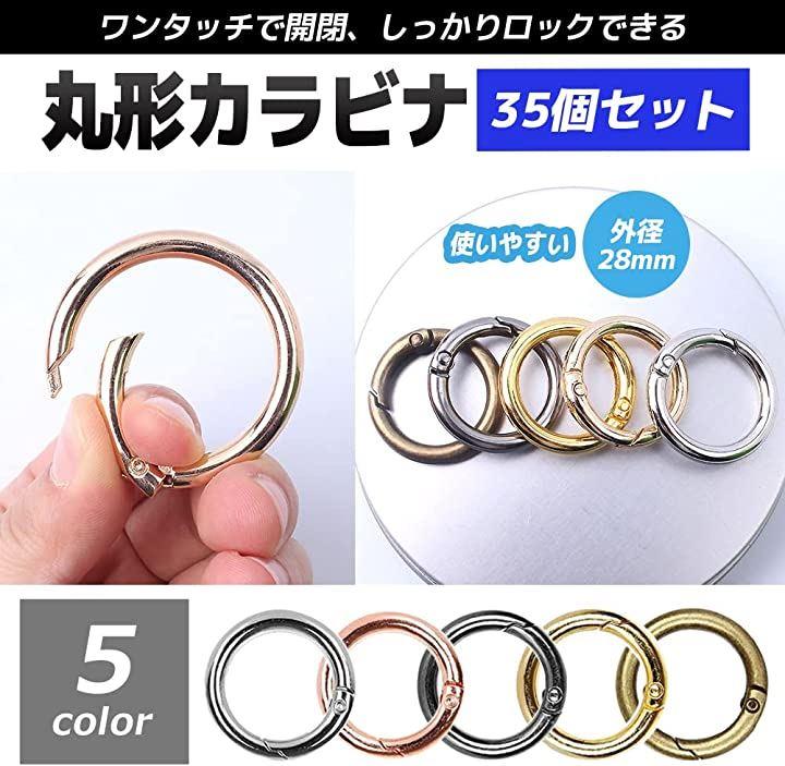 ワンタッチで開閉、しっかりロックできるDIY丸形カラビナ35個セットです。