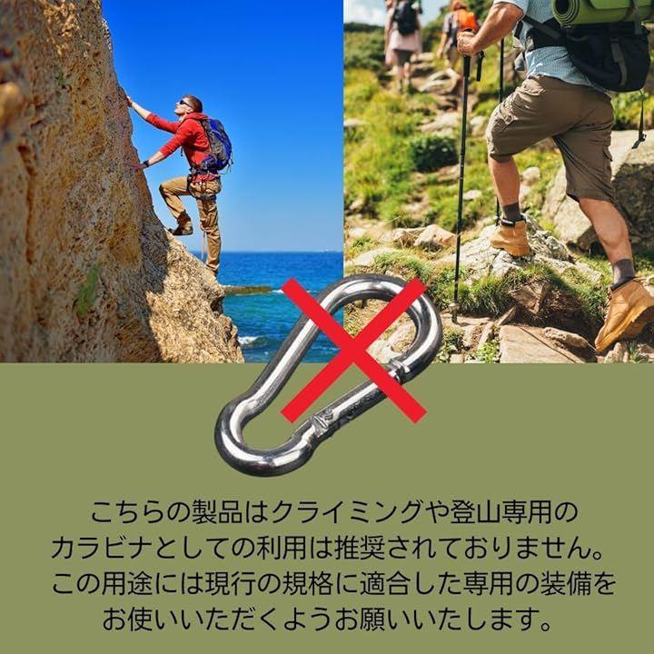注意点として、こちらの製品はクライミングや登山専用のカラビナとしての利用は推奨されておりません。