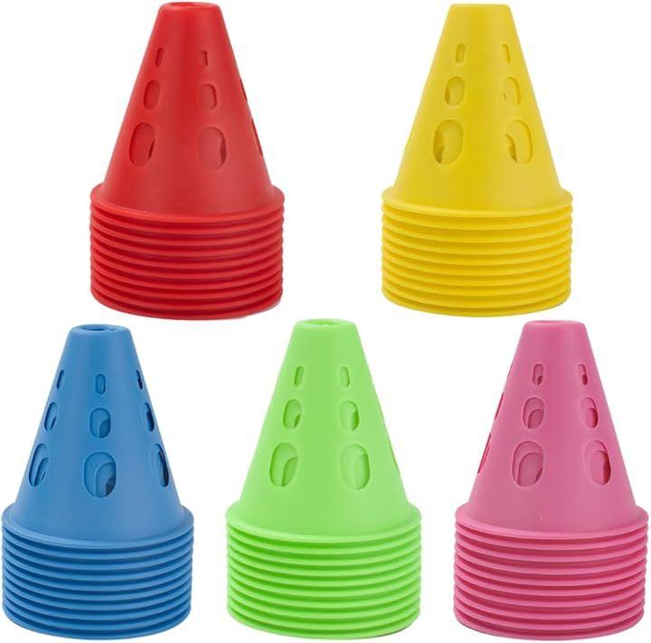 Color cones, marker cones, for sports days, baseball, soccer, lightweight, perforated, 5 colors, set of 50