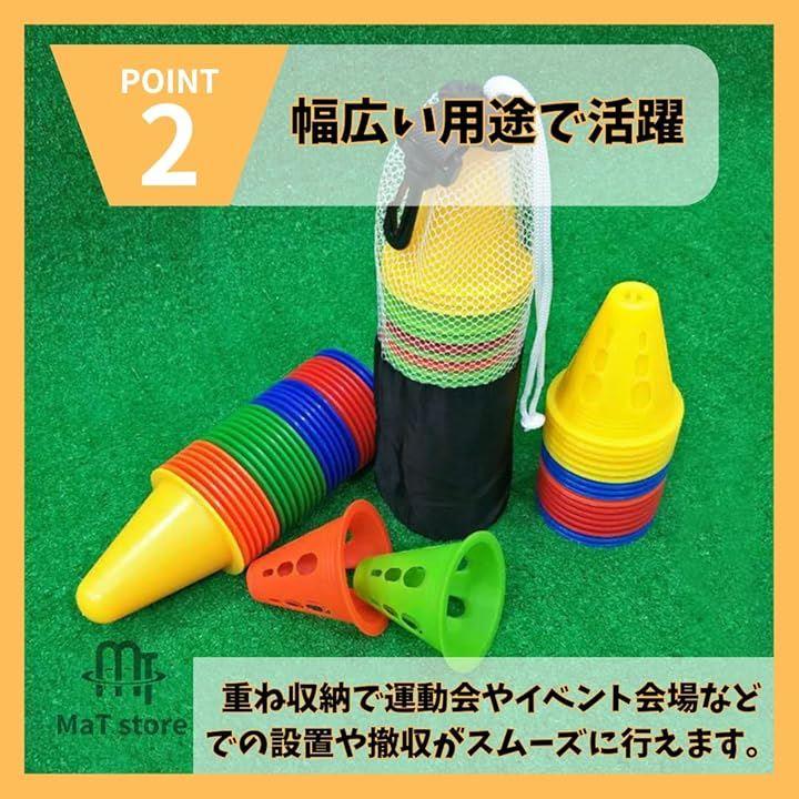 マーカーコーンによりコーナーリング、ラインや着地ポイントなどの目印に最適です。