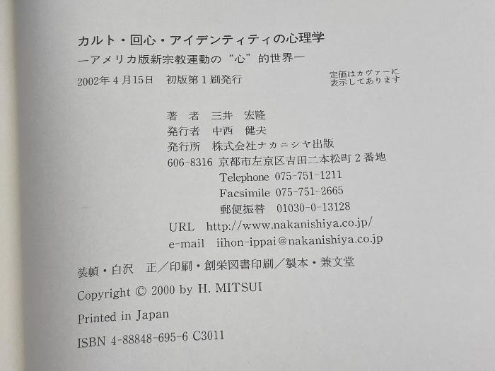 商品名:カルト・回心・アイデンティティの心理学: アメリカ版新宗教運動の“心”的世界 ナカニシヤ出版 三井 宏隆