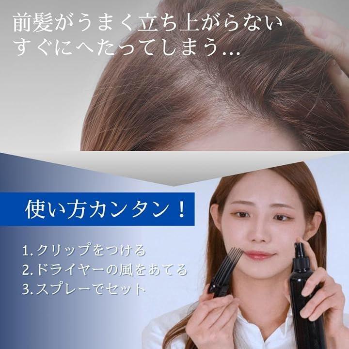 このクリップを前髪の根元に挟んで、スプレーを当てるだけで自然な立ち上がりが作れます。