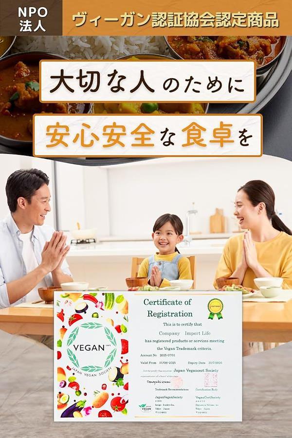 「ヴィーガン&グルテンフリー」保存料、小麦粉や油脂など一般的なカレールーに含まれる成分は一切不使用。