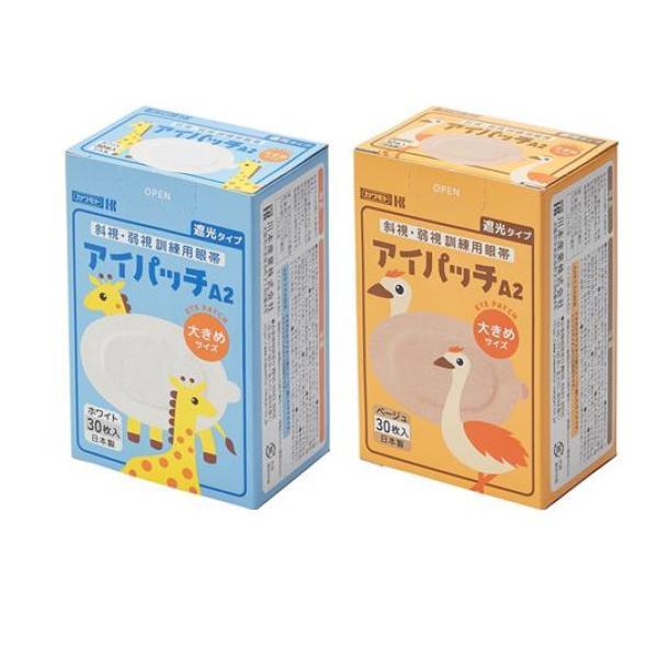 製品の特徴●川本産業 カワモト 斜視・弱視訓練用眼帯 アイパッチ A-2 大きめサイズ ホワイト(※ホワイトはベージュよりも粘着力が弱く、肌の弱い方におすすめです。)●小児の斜視・弱視の訓練方法のひとつとして健康な眼を遮へいし、弱視眼を強制的に使用させ、視力の発達をうながす眼帯です。●通気性に優れており、粘着剤は皮膚刺激性の低いものを使用しています。●左右どちらの眼にも使用できます。●遮光できるタイプですので、各種検査にも使用できます。●個包装●日本製●サイズ(取っ手を含む):横幅94mm×縦幅60mm(内側不織布パッド:横幅63mm×縦幅39mm)●A2サイズの目安:大きめのお子さま(3歳以上~)に適したサイズです。(※ふつうサイズ(A1)は別売りです。)