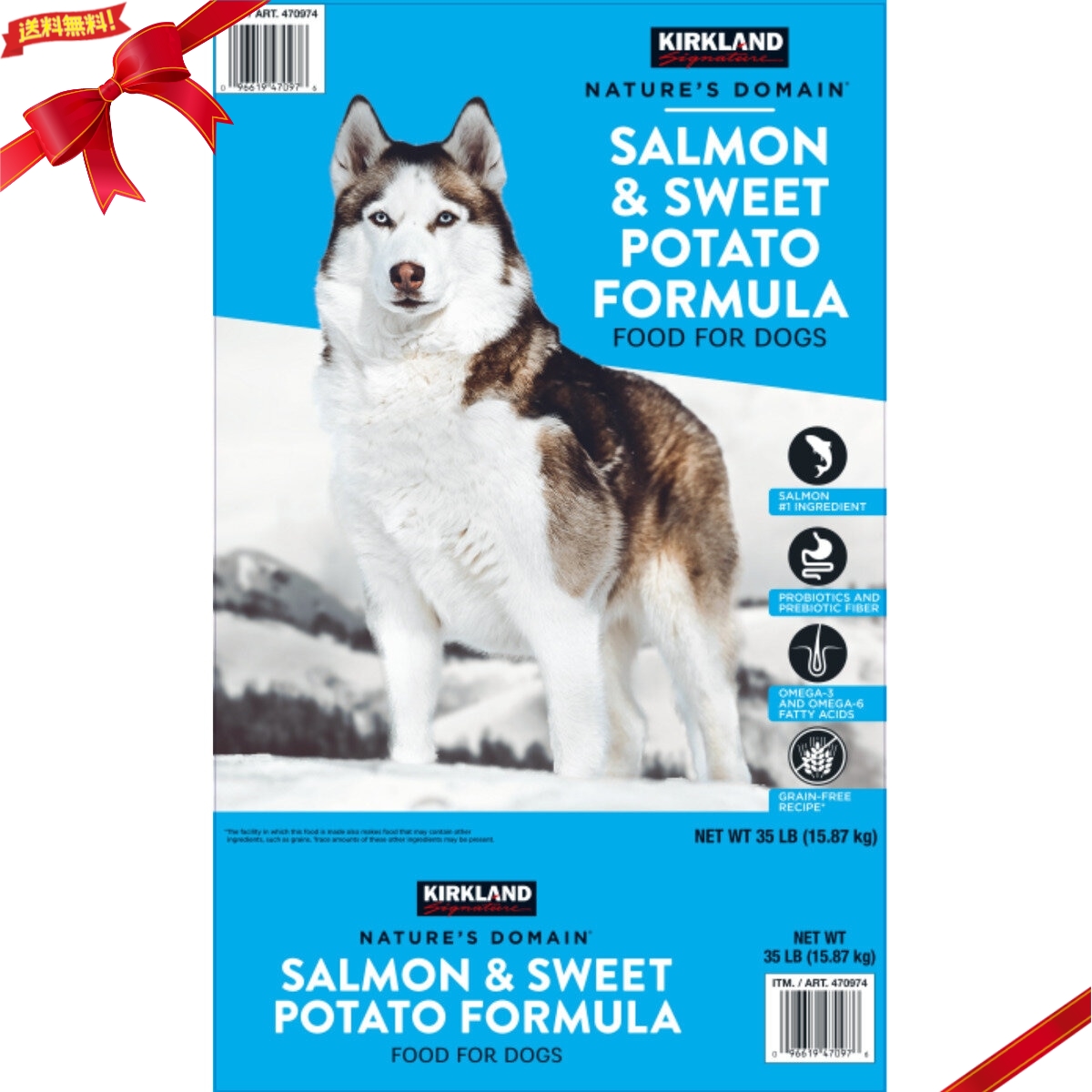 カークランドシグネチャーの成犬・子犬用サーモン、ポテトは良質なたんぱく質、オメガ脂肪酸が含まれており、健康的な生活をサポートします。