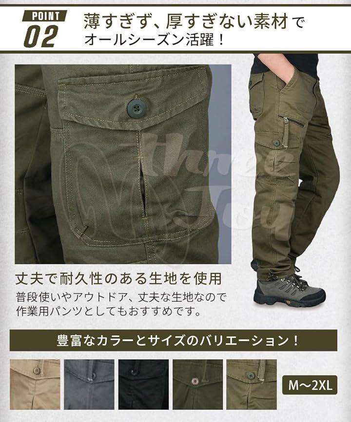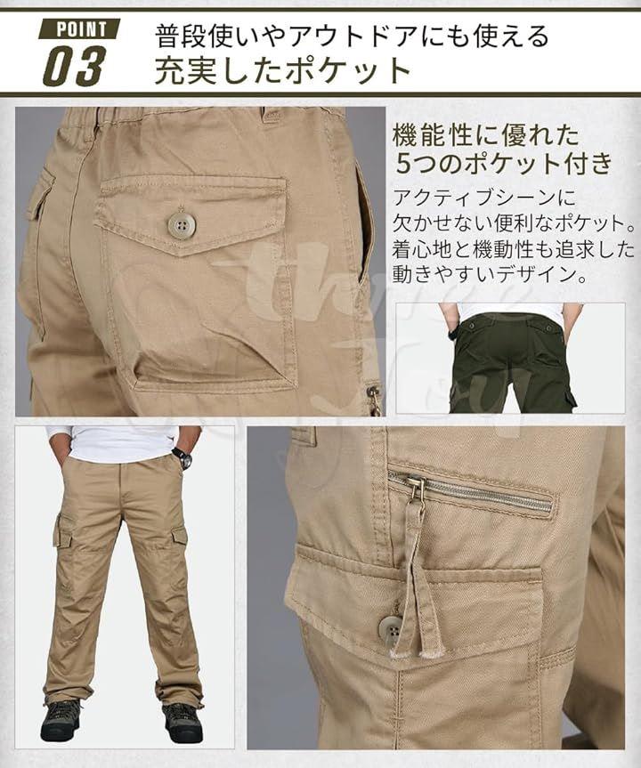 「サイズ」総丈/ウエスト/股下/太もも(cm)「M」100/79/96/78/64「L」102/83/100/79/66「XL」104/87/104/80/68 「2XL」106/91/106/81/70*サイズに若干の誤差が生じる場合がございますのでご了承ください。