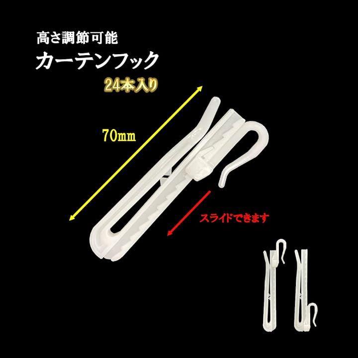 フックを下げるとカーテンが短くなり、フックをあげるとカーテンが長くなります。