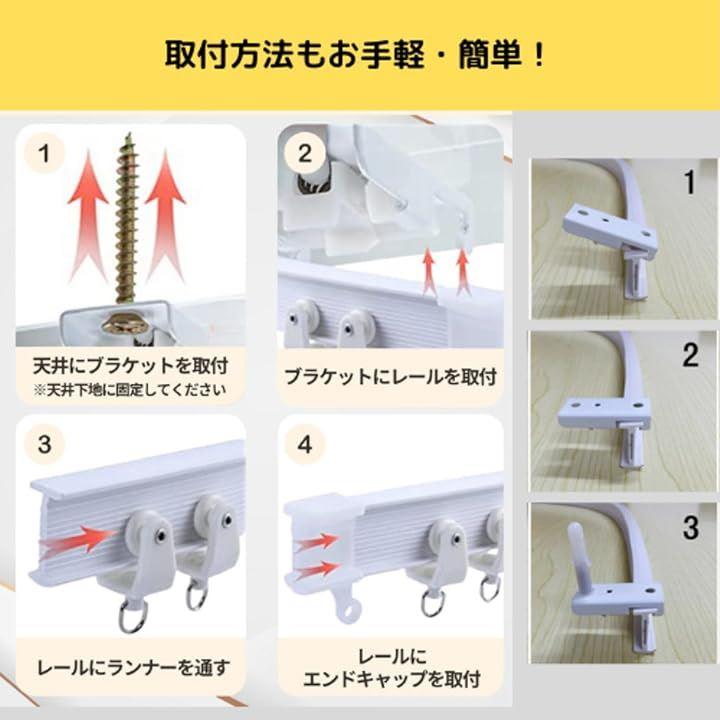 本商品は取り付けが簡単な曲がるカーテンレールになります。
