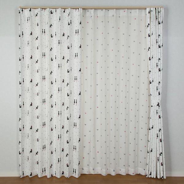 ここにもねこ達の姿が。柔らかな色合いがドレープカーテンとの相性抜群。
