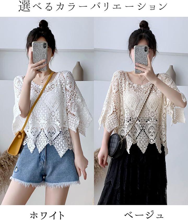 「素材」ポリエステル80%、再生繊維20%「カラー」白、ベージュ「サイズ(cm)」one size 着丈49/肩幅41/身幅50/裾幅57/袖丈37/袖幅22