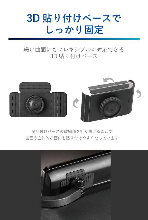 ●3D貼り付けベースでしっかり固定・緩い曲面にもフレキシブルに対応できる3D貼り付けベースでしっかりと固定することができます。