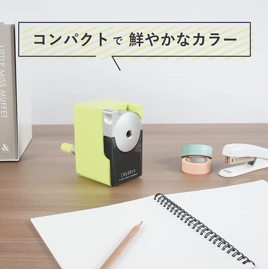 カール事務器 鉛筆削り カラリス グリーン CP-100A-G色: グリーンブランド カール事務器(CARL)色 グリーン電源 手動材質 アクリロニトリルブタジエンスチレン商品寸法 (長さx幅x高さ) 12.2 x 6 x 10.4 cm 鮮やかなカラーで、シャープな切れ味を実現した鉛筆削り。コンパクトサイズの為、省スペースで使用可能。【対応鉛筆】通常鉛筆(8mm)【機能】鉛筆が削り上がると、ハンドルが軽くなるムダ削り防止。2段階芯調節機能付き、芯の太さ0.5mm⇔0.9mm。【材質】ABS、POM、GPPS、鋼板デスクにもマッチする鮮やかなパステルカラーデザインの鉛筆削りです。シャープな切れ味を実現し、削った後は綺麗に仕上がります。芯の2段階調節機能付き。芯の太さを(0.5mm⇔0.9mm)に調節でき、シャープ・やや太めとお好みに合わせ削る事ができます。また、削る鉛筆の表面に傷が付かないよう、ゴム製チャックを採用しています。コンパクトサイズで省スペースで使用できる為、お子様の新入学祝い・リビング学習にも最適な商品です。