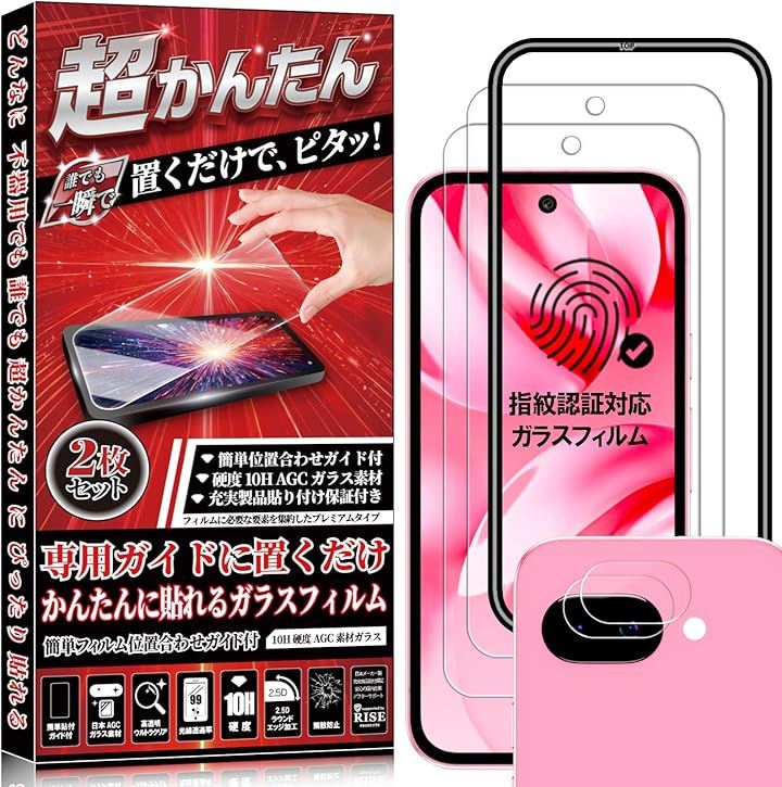 ***「対応機種」:Google Pixel 9A グーグルピクセル9a「セット内容」:ガラスフィルム x 2枚、カメラフィルム x 2枚、かんたん位置合わせガイド枠 x 1個、 WETワイプ x 2枚、DRYワイプ x 2枚、ホコリ除去シール x 2枚、クリーニングクロス x 1枚、スクレーパー(ヘラ) x 1個。