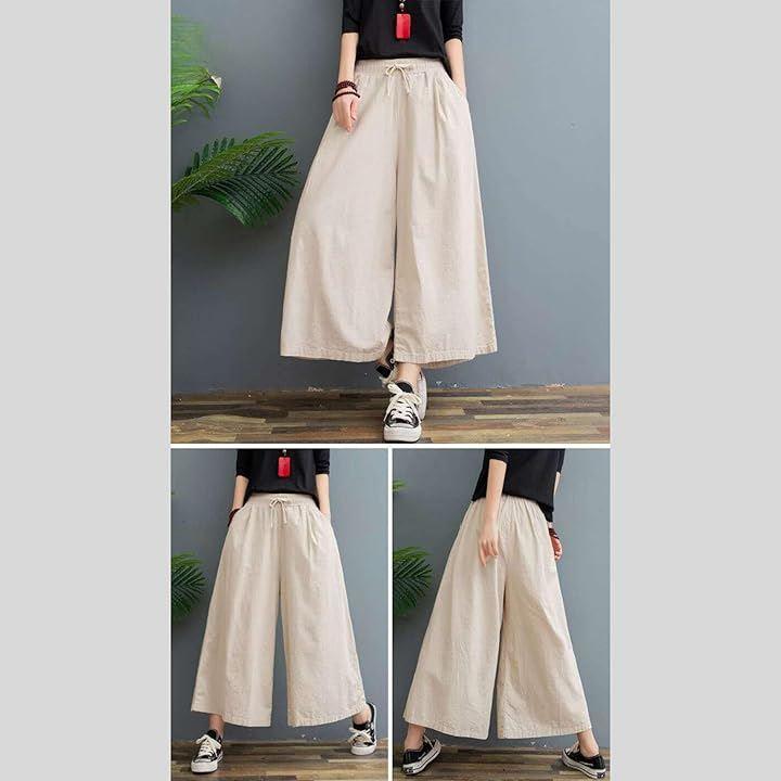 麻綿素材のロング丈のワイドパンツは、そのナチュラルな風合いと豊かな落ち感が特徴です。